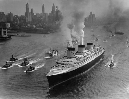 The steamship SS Normandie enters the port of New York in the 1930s. In the late 1930s, ocean liners like this one regularly transported central bank gold from Europe to the safety of the United States at the behest of the BIS. (photo © - Keystone)