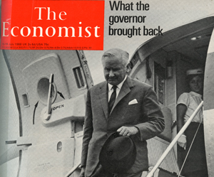 Cover page of -The Economist- in 1968. Bank of England Governor O'Brien, returning from a BIS meeting in Basel in which he had secured central bank support for sterling.